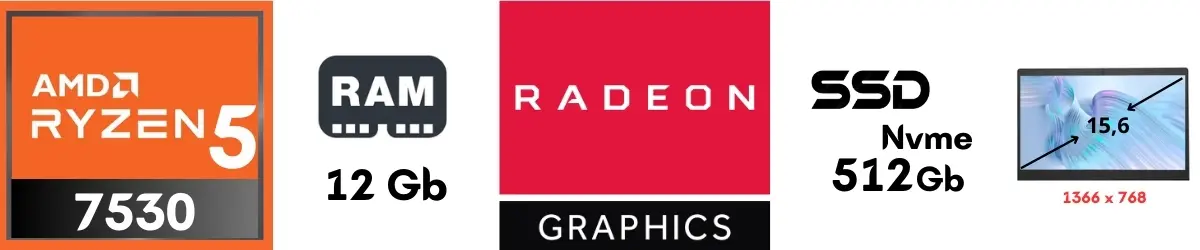 Procesador: AMD Ryzen™ 5 7530U (Frecuencia hasta 4.50 GHz, 6 núcleos/12 subprocesos)